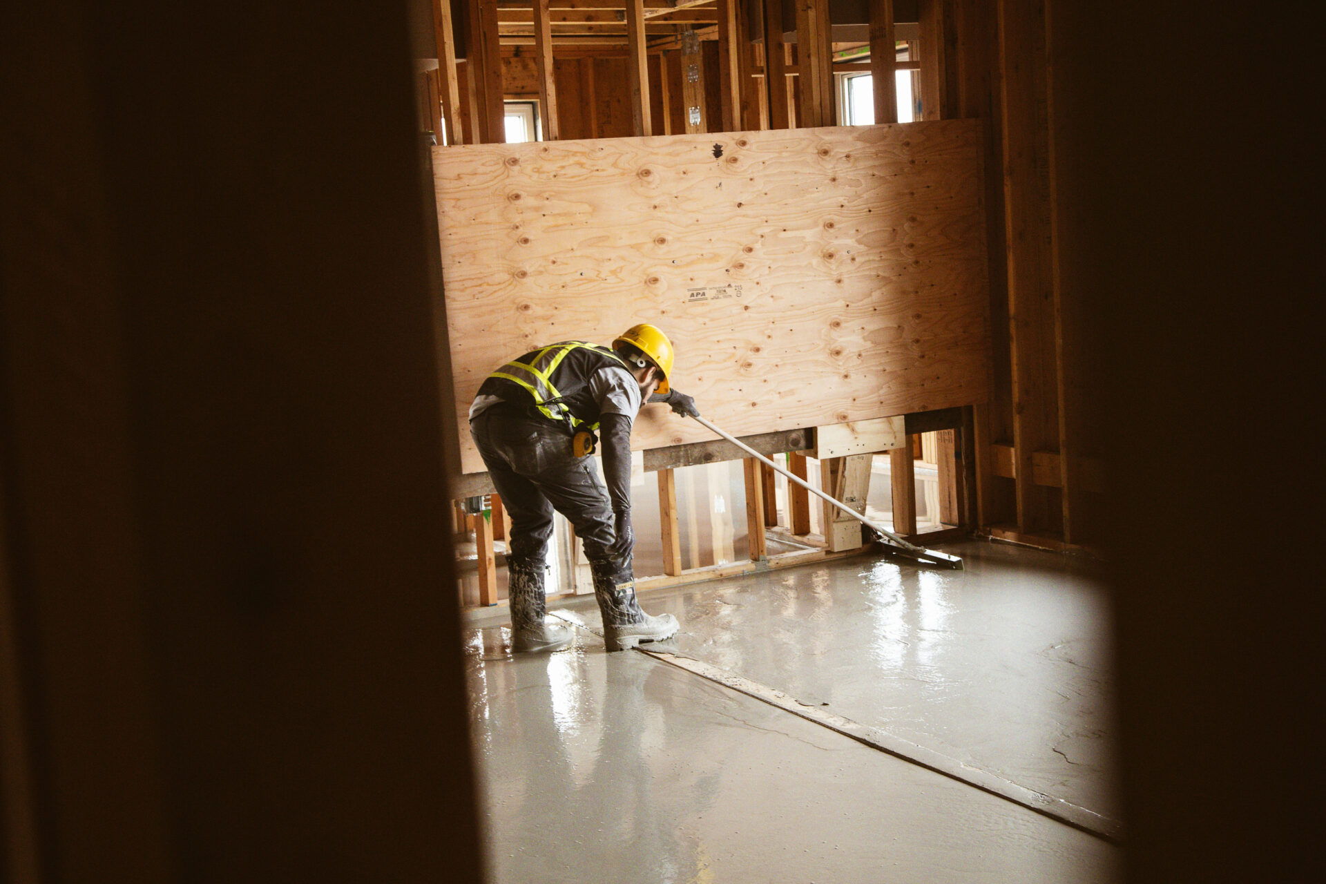 SCC Concrete arrives on a job site in a conventional concrete mixer truck and is pumped to the placing location with a standard concrete pump. The outside operation appears similar to regular concrete, but that’s where the similarity ends. Once poured onto the floor, the concrete is “jigged” into place with the use of specialty tools (jiggers) that create a wave in the material which is propagated through the concrete. It is the combination of the wave propagation (the addition of very low frequency vibration) and the highly fluid nature of the material which tends to level the surface. This method has the unique advantage of automatically adjusting the depth, regardless of the levelness of the subsurface. The result is a flat floor, ready to meet most flooring tolerances.